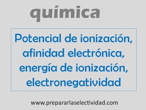 Potencial de ionización, afinidad electrónica, energía de ionización y electronegatividad